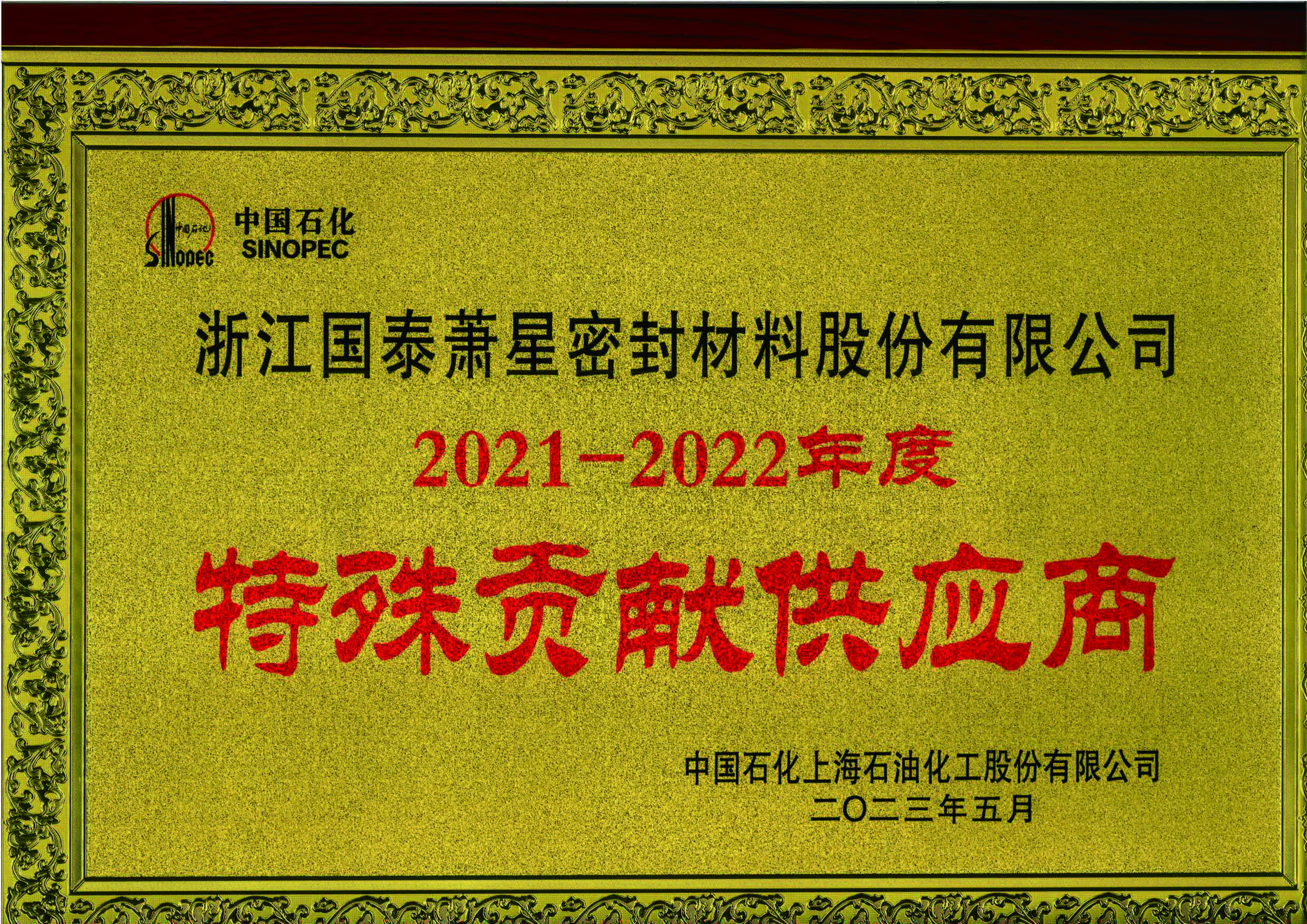 上海石化特殊贡献供应商
