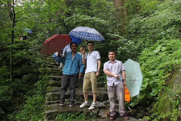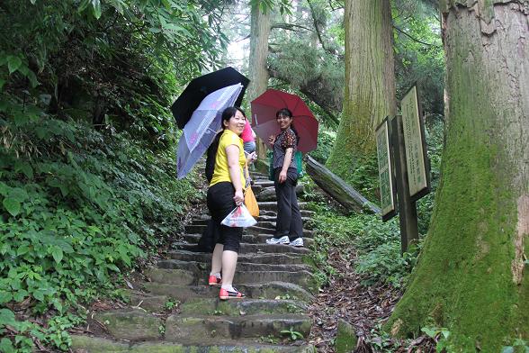 来到景区,雨赋予了天目山更多的内涵,云雾飘渺,宛如仙境。大家亲眼目睹天目山峰恋叠翠,古木葱茏,奇岩怪石之险,流泉飞瀑之胜,不愧“大树王国”“清凉世界”盛名,为古今揽胜颐神胜地。天目千重秀,灵山十里深,她赋予人类享之不竭的璀灿文化与独特的大自然风韵。幸运之星们置身于这有原始风貌的山水之间,一路看倒挂莲花一线天、四面峰、五世同堂、拥抱大树王、过开山老殿、中峰塔院、经半月池,充分领略这优美的意境,举目远眺,满山青翠,尽收眼底,真正体会到了心旷神怡的那种感受。