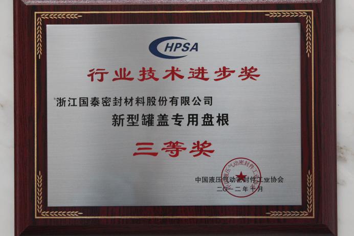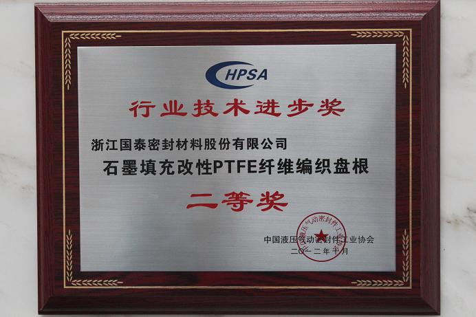 2012中国液压液力气动密封行业技术进步奖评选活动于8月下旬落下帷幕,共评选出获奖项目41项,其中密封行业二等奖4项、三等奖3项。国泰密封“石墨填充改性PTFE纤维盘根”和“新型罐盖专用盘根”分别荣获行业技术进步二等奖和三等奖。颁奖活动于2012年10月28日在北京举行,公司常务副总吴益民代表公司前往领奖。