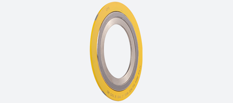 作为密封元件,由V型钢带和软的非金属填充材料交替缠绕而成,回弹性优良,能够对管道系统的压力热循环和振动进行自动补偿。内环保证垫片精确定位于法兰密封面中央,同时限制缠绕本体过分压缩。外环防止缠绕本体因刚性不足发生内屈曲,同时填补垫片与容器或管道法兰面之间的空隙,以避免此空隙干扰流体的流动以及由此引起流体对垫片的冲蚀。